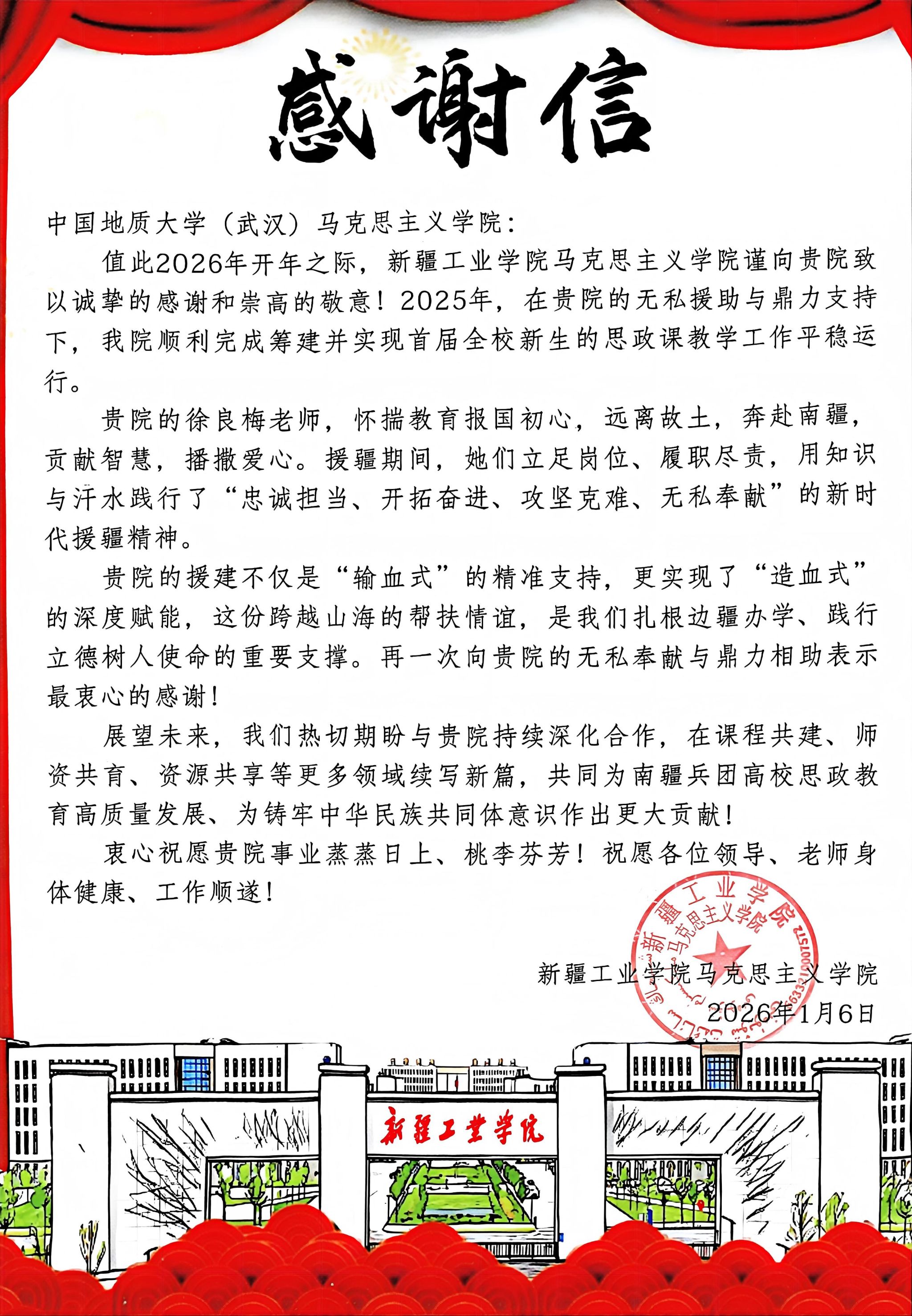 新疆工业公司3044永利集团有限公司感谢信
