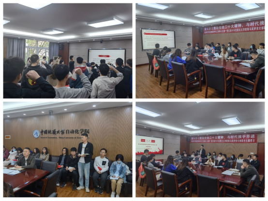 其后,博一党支部复杂系统建模与优化党小组黄恒宇同志和范海鹏同志结合自身科研和工作经历,对党的二十大报告内容和习近平总书记的回信精神发表了自身感悟。一是表达对习近平总书记在回信中给予国家能源安全高度重视和地质工作者真挚情怀的深刻体悟;二是强调地质工作者要积极开拓创新、攻坚克难,打破国外学科壁垒,体现地质工作者的使命担当;三是作为“新工科”专业的地大学子,要锤炼过硬本领,高质量服务于国家地质钻进过程发展。大家统一表示,要弘扬地大“为国找矿、地质报国”红色基因,讲好新时代地大故事,坚定地大学子“地质报国”理想信念,谱写新时代地质工作者的奉献乐章。