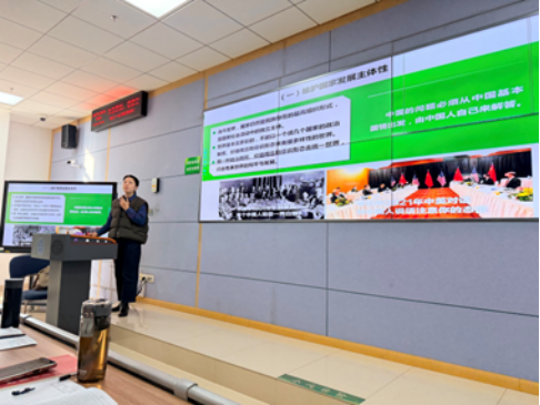 张丹丹老师以扎实的理论功底和清晰的教学思路,结合鲜活案例,深刻阐了旗帜鲜明反对历史虚无主义的价值立场,梳理了在百年未有之大变局中坚持立足中国、面向世界的逻辑脉络与实践路径,深刻阐释了新时代做忠诚爱国者的深远意义。督导及与会教师对张老师的课堂给予了高度评价,喻芒青教授点评其课程逻辑清晰、感染力强、员工抬头率和互动率较高,展现了公司教师在理论钻研和教学创新上的活力与潜力,能够将深邃的理论讲深讲透讲活,有效调动员工的课堂参与积极性,充分激发员工的爱国主义情怀、责任与担当。