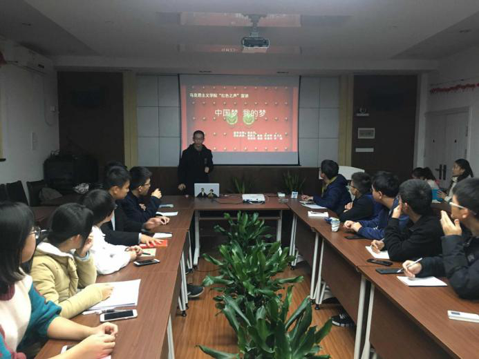 宣讲活动一开始,主讲人蔡薛文同学从中国梦的基本内涵和意义及中国的发展史两个部分进行了具体解说,期间还播放了一个中国梦的相关视频,加深在场同学对“中国梦”的理解。接着,为增加宣讲活动的趣味性,由蔡薛文同学主持进行了以“中国梦”为主要答题内容的知识竞答活动,调动了全场的积极性。之后,主讲人胡梦婷同学从中国梦的前进方向这一角度出发,对中国梦的未来发展方向、中国梦建设的主体等内容进行了详细解说。