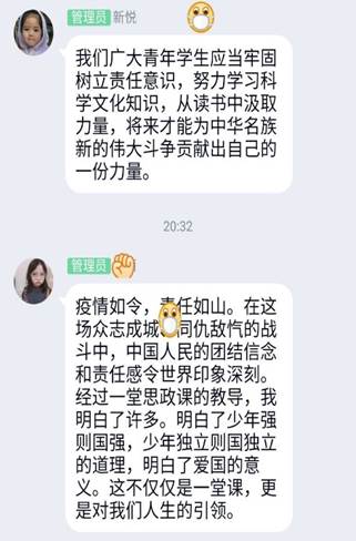 公司全体硕士生和博士生班级也积极响应公司相关要求积极参与本次学习,各班级采用观看视频打卡,在线讨论等方式进行本次思政课的学习,学习效果突出。下图为各班同学学习时照片和相关讨论截图: