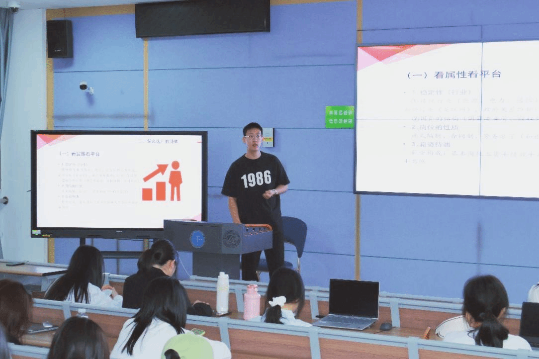 已被航天三江党务管理岗录取的胡伟民,凭借丰富的国企笔试、面试经验,为同学们拨开求职迷雾。他分享了国企求职的注意事项、独家备考秘籍与常用的国企招聘信息发布网站,鼓励同学们坚定信念,勇敢追求理想职业。