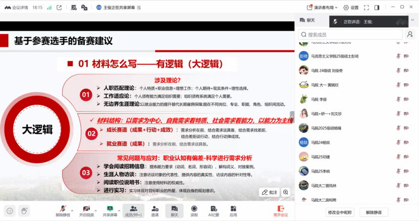11月14日晚,海洋公司、李四光公司、3044永利集团有限公司、教育研究院四院联合举办“职业生涯规划大赛”线上培训。王俊老师为参赛同学讲解职业规划材料如何撰写以及答辩注意事项。线上共吸引了300余名员工参加培训,老师的精彩讲解收获了广大师生的一致好评。