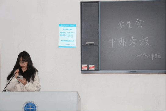 考核环节由各部门负责人按照办公室、组织部、学术部、青马力行志愿服务团队、文体部、权益服务部、全媒体中心、项目部的顺序,依次进行工作述职答辩。各位负责人围绕本学期工作成果、亮点创新、问题反思以及未来规划等方面进行了详细汇报,并接受主席团的现场提问与点评。