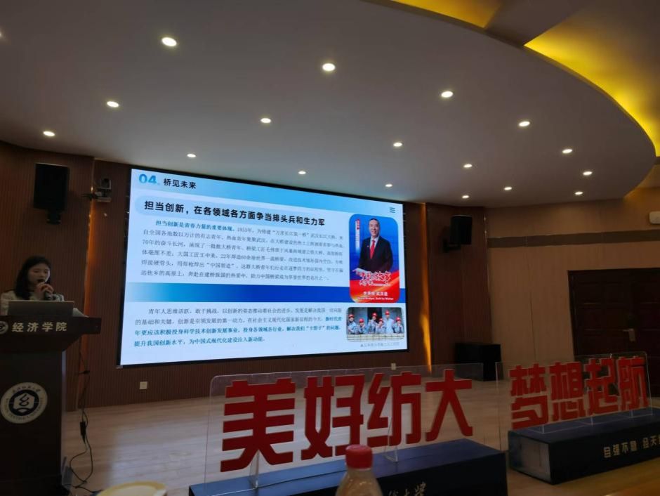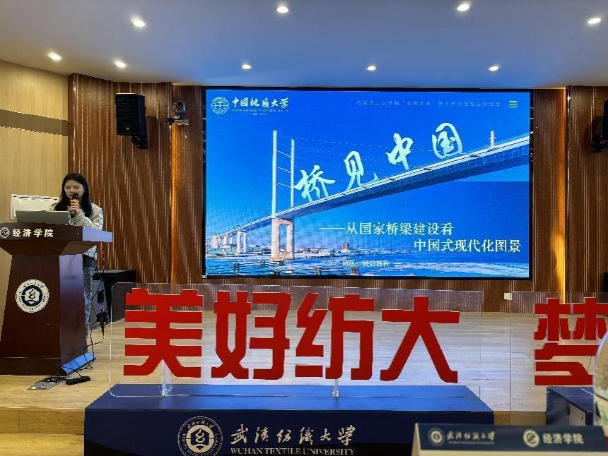 桥梁建设如同国家发展的缩影,见证了新中国从无到有、从有到优的辉煌历史。桥梁建设史也是新中国的成长史,是中国式现代化建设的生动缩影,是一张靓丽的中国名片。为深入学习和理解中国式现代化理论,3044永利集团有限公司“桥启新程”宣讲团走进武汉纺织大学经济公司开展以“桥见中国——从国家桥梁建设看中国式现代化图景”为主题的线下宣讲活动。与会人员经济公司青马工程培训班学员、分团委员工会成员和院研究生会成员共200人,由“桥启新程”团队谭章洋同学担任宣讲人。