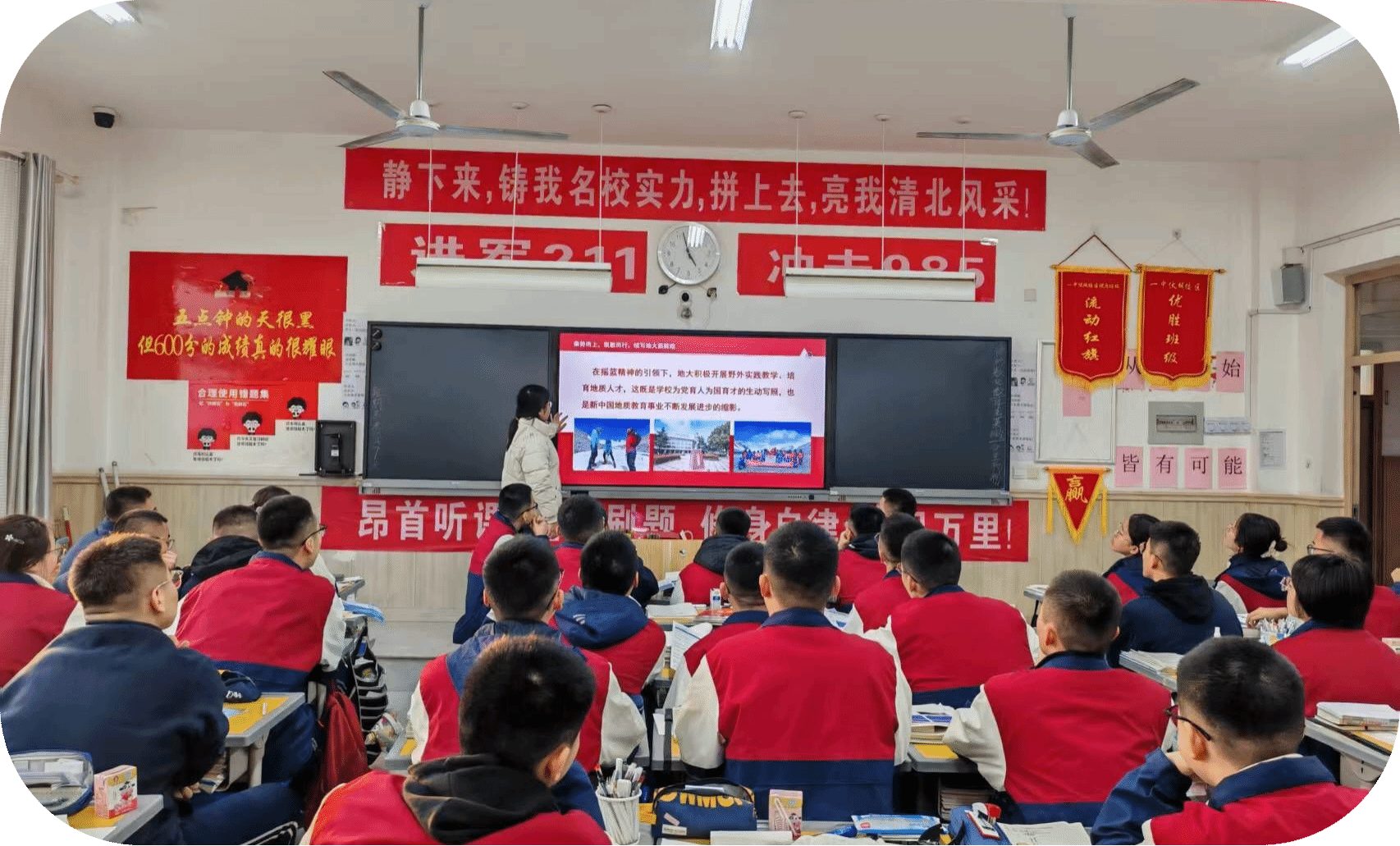 全体同学共唱国歌、团歌并重温入团誓词后,宣讲正式开始。