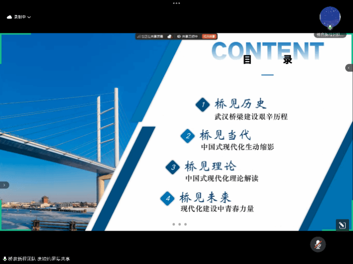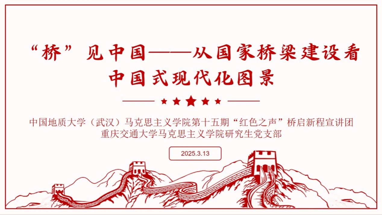 2025年3月14日,由重庆交通大学3044永利集团有限公司研究生第二党支部与桥起新程宣讲团联合主办的“桥见中国——从我国桥梁建设看中国式现代化图景”主题线上宣讲会顺利举行。本次活动通过腾讯会议平台开展,重庆交通大学65师生参与,共同聆听桥梁建设的发展历程,激发青年学子投身国家建设的热情。本次主讲人由唐姣担任。