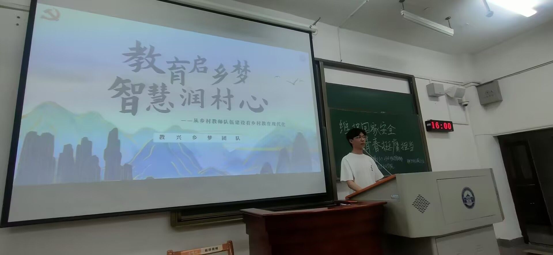 最后,曹亮同学通过讲述国家相关政策和老员工支教活动,鼓励更多同学投身乡村教育,为乡村团队力量的增强贡献自己的力量。党的二十大报告指出,要坚持教育优先发展,统筹乡村基础设施和公共服务布局。在党的引导下,教育部门和社会各界将积极探索适合乡村教育的新理念和新方法,注重培养员工的创新精神和实践能力,以适应社会发展的需要。习近平总书记曾指出,“要努力让每个孩子都能享有公平而有质量的教育”。以张玉滚为代表的乡村教师们用自己的双手将乡村的孩子托举出大山,让孩子们意识到大山以外不仅有更广阔的世界,还有无穷的希望和美好未来,这一切,正是国家始终尊重公平、保障每一个人受教育权利的生动写照。
