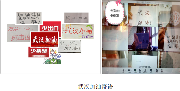 会议包含三个环节:1.大家汇报居家情况2.分别谈抗疫感受3.手写“武汉加油”表达支持。