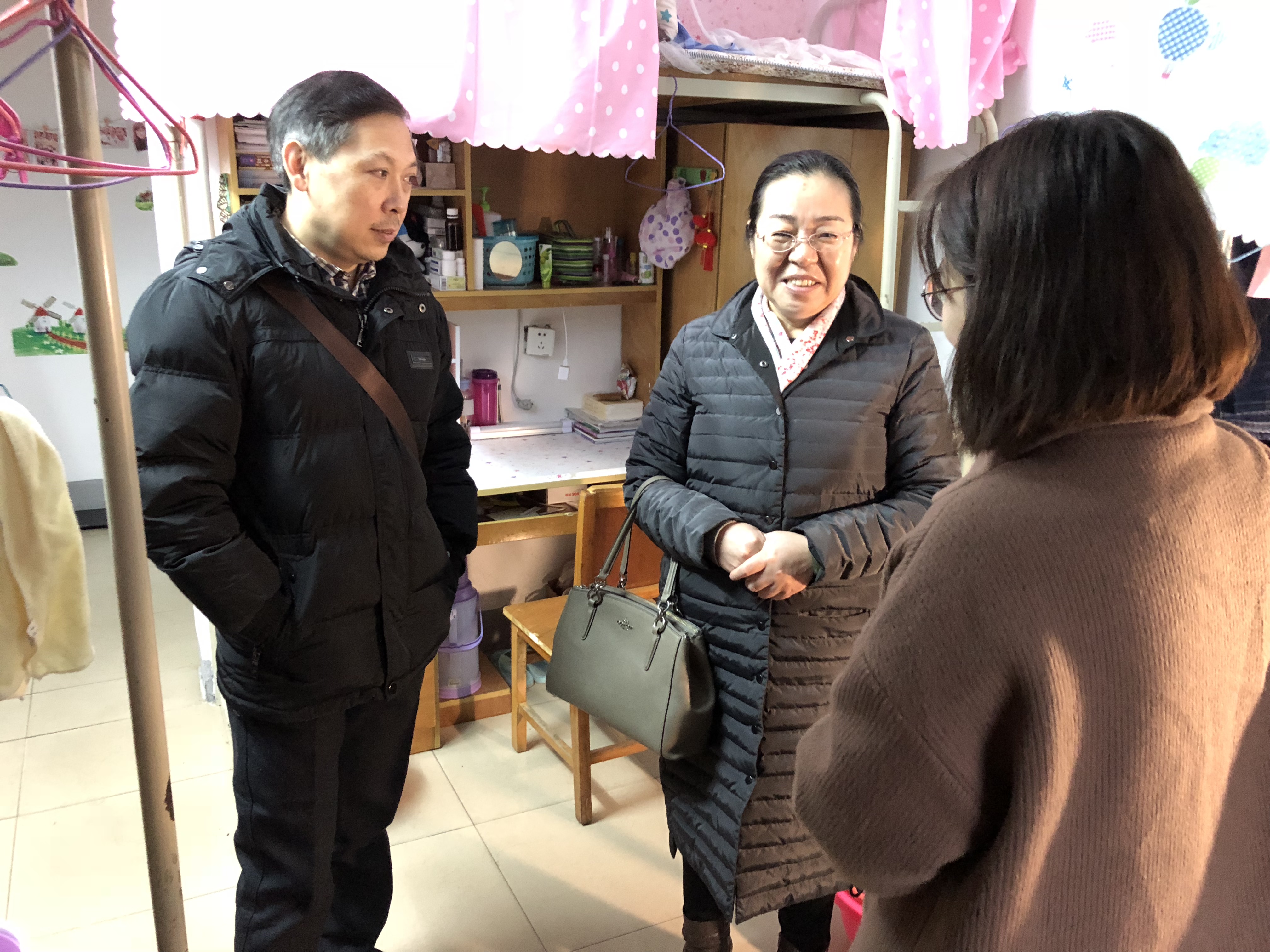 图二:经理高翔莲、副经理张存国检查本科生宿舍,慰问留校本科生