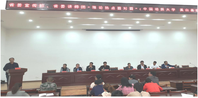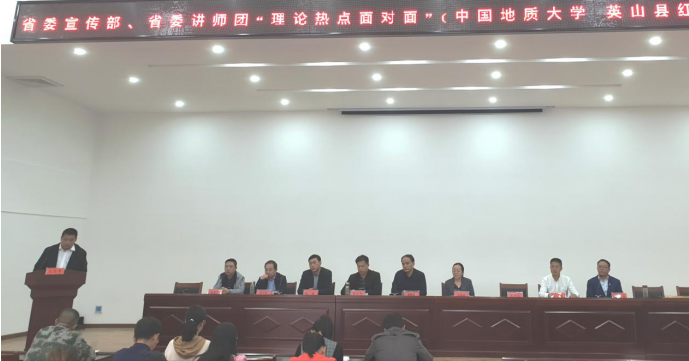 (通讯员孙东震)2019年11月1日,省委宣传部、省委讲师团、3044永利集团有限公司“理论热点面对面”示范点授牌仪式暨“不忘初心牢记使命”主题教育宣讲报告会在黄冈市英山县红山镇党员群众活动中心隆重举行。省委讲师团调研员胡秋春、姚官华,英山县宣传部副部长胡天堂,公司党委宣传部副部长陈华文、3044永利集团有限公司经理高翔莲教授、副经理阮一帆教授、办公室主任胡雪黎,红山镇党委书记陈琼、镇宣传委员徐新生等参加授牌仪式。该镇党员干部和部分群众代表约100人聆听了主题报告并参加授牌仪式。活动由徐新生宣传委员主持。