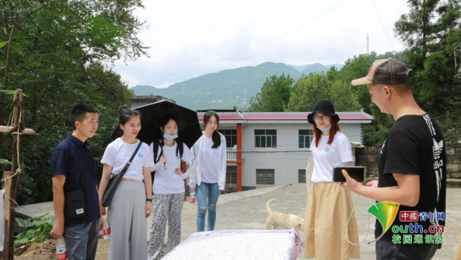 图为团队成员在茶旅电商园进行访谈。 中国青年网通讯员 王竞婧 摄