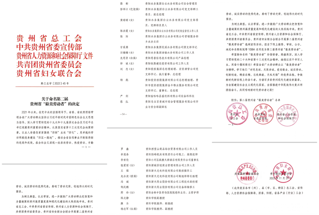 杨志军员工被评为第二届贵州省“最美劳动者”