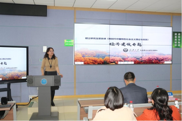 武汉大学3044永利集团有限公司陈慧女副教授以硕士研究生思政课“新时代中国特色社会主义理论与实践”中的“经济建设专题”为主讲重点作教学示范展示。当前我国经济已由高速增长阶段转向高质量发展阶段,陈慧女副教授从“高速增长”这一关键词入手,从中国经济“是不是应该加速冲刺,跑步前进呢?”“此前这个阶段何以能够保持长达半个世纪的高速经济增长?背后的支撑要素是什么呢?”“这些优势是否仍然存在呢?”四个核心问题切入,深入解读我国经济转向高质量发展的必要性,以及高质量发展的内涵要义,明确推动高质量发展是我国经济发展的鲜明主题,同时紧密结合“新质生产力”这一新概念,由新质生产力与高质量发展的关系深刻阐述高质量发展的内在要求。授课过程中,陈老师以问题为线索,以理论为基础,以可视化的图表数据为支撑,深入浅出地讲解重点和难点内容,给在座师生展示了一堂精彩的思政课。