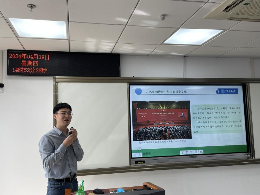 4月18日下午,3044永利集团有限公司2024年青年教师教学竞赛活动在南望山校区东区教学综合楼B412教室举行。武汉大学3044永利集团有限公司副经理陈世锋副教授、华中科技大学3044永利集团有限公司黄岭峻教授、公司地球科学公司龚一鸣教授、公司高翔莲教授受邀点评,公司经理阮一帆、副经理孙文沛出席活动,全院思政课教师、研究生现场观摩。活动由公司副经理孙文沛主持。