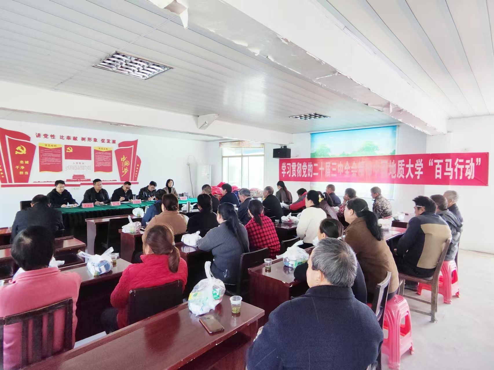 在英山县红山镇东汤河村党员群众服务中心,吴仁喜副部长、汪再奇书记、陈军副经理、李海金副经理、胡雪黎主任等同村两委委员和党员群众代表开展面对面交流,推动党的创新理论在基层落地生根。宣讲队专家成员采取“拉家常”宣讲等群众喜闻乐见的形式,用通俗易懂的语言宣讲党的二十届三中全会精神,把全会精神及时准确地传达到基层。同时,结合村民的生产生活实际,双方就如何利用地热等当地资源优势推进乡村全面振兴、促进集体收入持续增长、强化农业科技支撑等群众关心的热点难点问题展开了热烈讨论。在互动讨论中,宣讲队进一步摸透村情、熟透民情,并结合村庄实际和公司特色,因地制宜,对村民提出的具体问题“对症开方”,助力地方经济社会高质量发展。现场气氛热烈、掌声雷动。