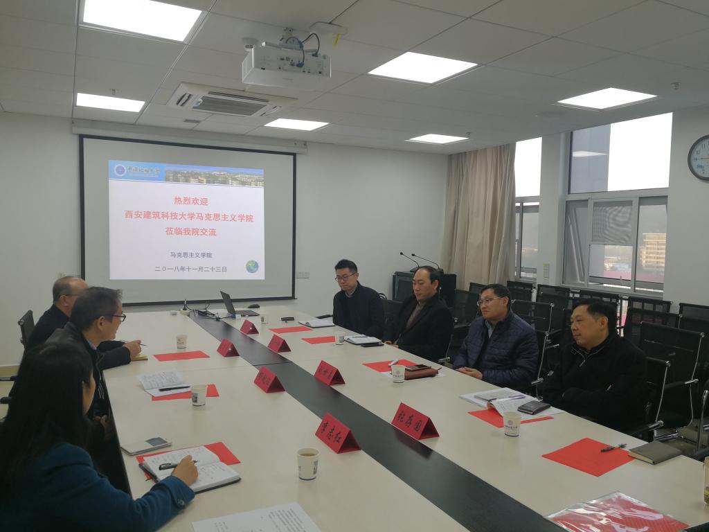2018年11月23日下午,西安建筑科技大学马克思主义公司党总支书记杨航征一行来公司开展调研。公司党委书记刘世勇、副经理张存国、阮一帆以及孙文沛、胡雪黎等老师参加调研座谈会。座谈会由刘世勇书记主持。