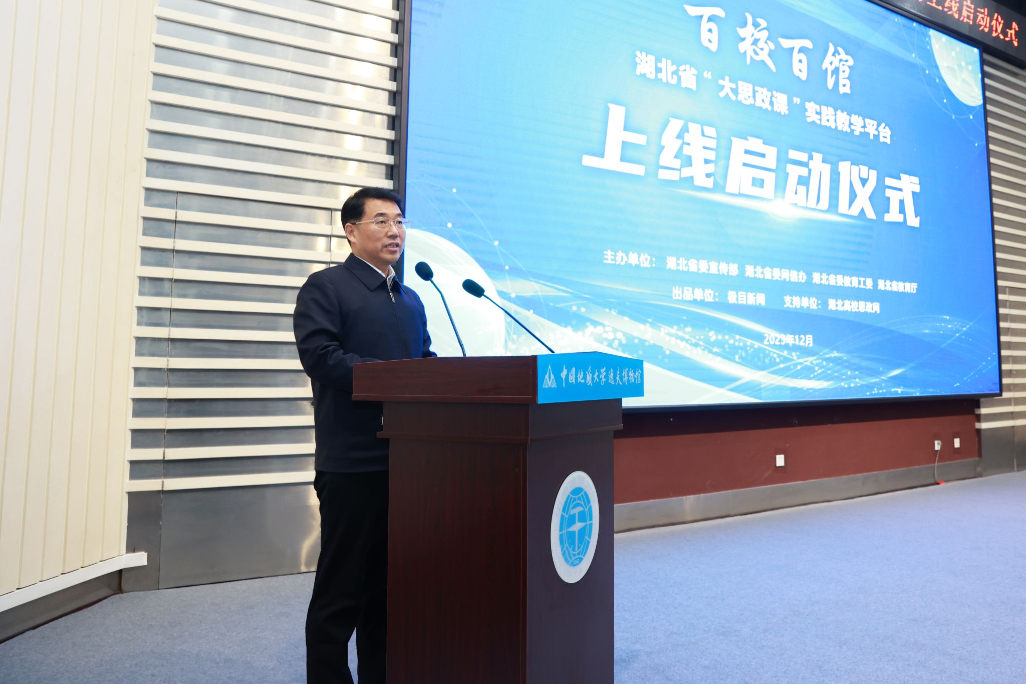 地大新闻网讯 (记者 孙彦钦)12月20日,“百校百馆”——湖北省“大思政课”实践教学平台上线启动仪式在公司逸夫博物馆举行。仪式现场发布了“百校百馆”平台首批上线展馆名单,即日起,湖北大中小学师生及员工家长,可通过线上平台一键预约,实地打卡首批已入驻平台的科技馆、博物馆、艺术馆等场馆。