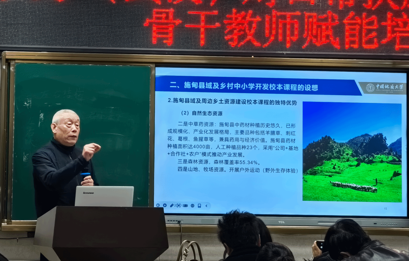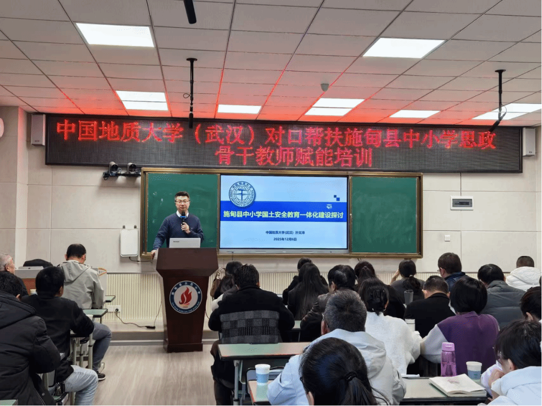 公司孙文沛副经理解读了习近平总体国家安全观的深刻内涵和实践成就,分享了地大创建《国土安全》品牌思政课的实践经验,分析了施甸县中小学国土安全教育一体化建设的内容和路径,助力当地教师打开校本课程建设的新视野。