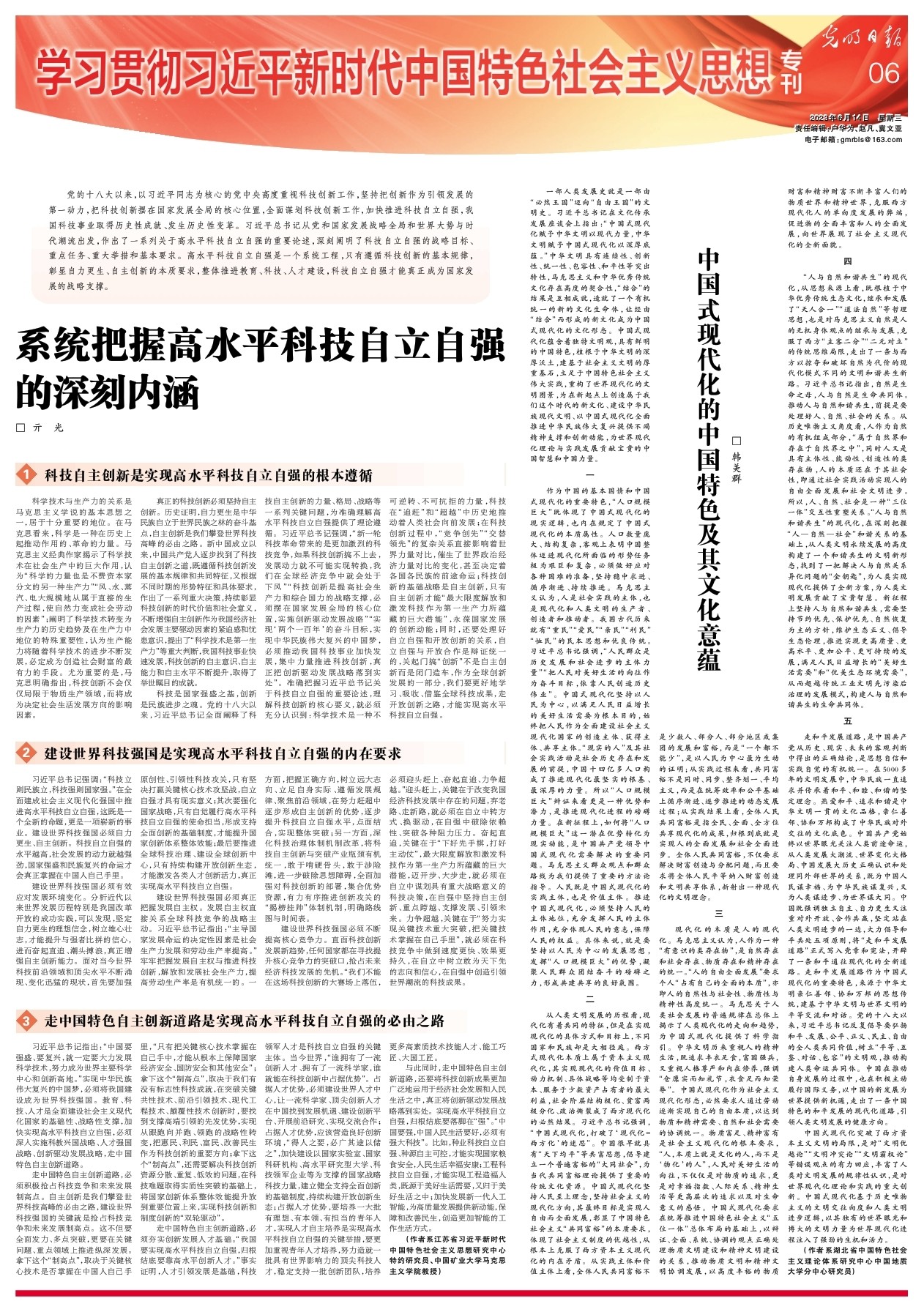 一部人类发展史就是一部由“必然王国”迈向“自由王国”的文明史。习近平总书记在文化传承发展座谈会上指出:“中国式现代化赋予中华文明以现代力量,中华文明赋予中国式现代化以深厚底蕴。”中华文明具有连续性、创新性、统一性、包容性、和平性等突出特性,马克思主义和中华优秀传统文化存在高度的契合性,“结合”的结果是互相成就,造就了一个有机统一的新的文化生命体,让经由“结合”而形成的新文化成为中国式现代化的文化形态。中国式现代化蕴含着独特文明观,具有鲜明的中国特色,植根于中华文明的深厚沃土,建基于社会主义文明的厚重基石,立足于中国特色社会主义伟大实践,重构了世界现代化的文明图景,为在新起点上创造属于我们这个时代的新文化、建设中华民族现代文明、以中国式现代化全面推进中华民族伟大复兴提供不竭精神支撑和创新动能,为世界现代化理论与实践发展贡献宝贵的中国智慧和中国力量。